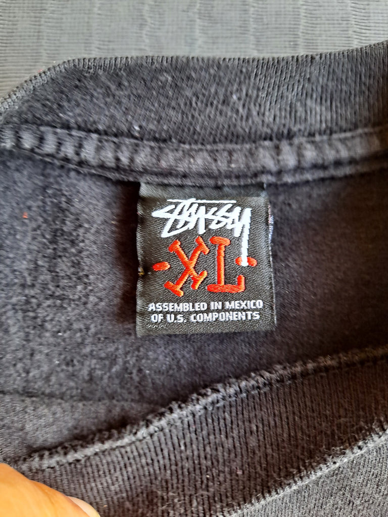 Stussy Old Skull Tribe Worldwide NY Chapter Skull Black T-Shirt in Men XL from around 2007 is a stylish and versatile piece featuring a graphic print of the iconic Stussy skull logo. This knit cotton shirt with a crew neck and short sleeves is suitable for all seasons. The black color and regular fit make it a classic and timeless wardrobe staple, perfect for those who appreciate streetwear, skate/surf culture, designer, and 90s-inspired fashion. Made in Mexico, this T-shirt is part of the Stussy World Tour product line, adding a touch of streetwear flair to any outfit.